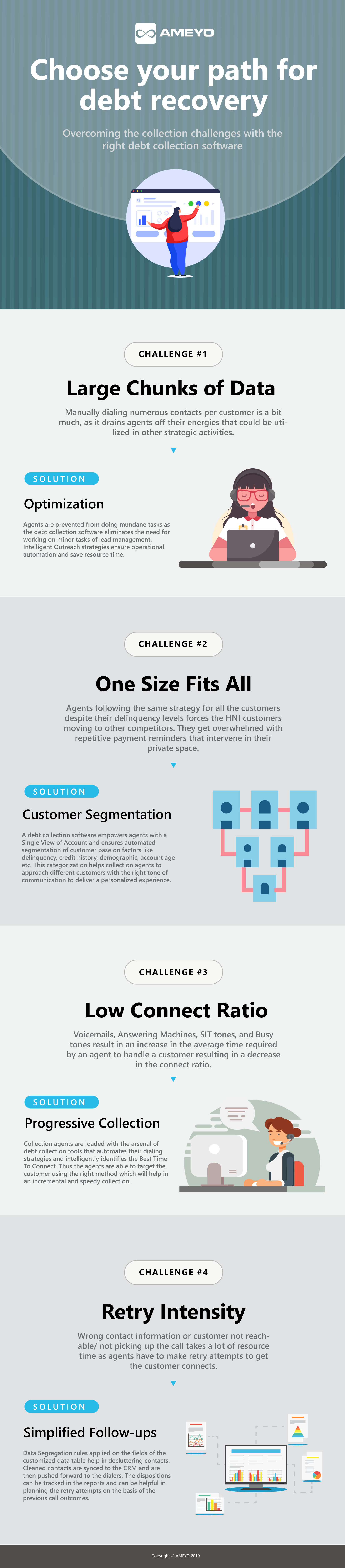 By now you must have got a fair idea of how the debt collection tech can help improvise your collection efforts and repurpose your collection efforts in a manner that it is more accurate, and the return on effort is higher. So if you are looking for an advanced debt collection software that can help you manage your collection process Easily, Efficiently and Effortlessly then check out Ameyo Collect that can help you beat out your collection challenges.
